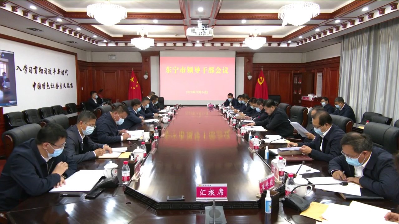 10月26日下午,我市召开全市领导干部会议。市委书记时林主持会议并讲话。他强调,要把学习宣传贯彻党的二十大精神作为当前和今后一个时期首要政治任务,全面落实省委和牡丹江市委常委会、全省、牡丹江市领导干部会议精神,迅速掀起学习宣传贯彻党的二十大精神热潮,把党的二十大精神转化为真抓实干、跳起摸高的强大动力,推动党的二十大精神在东宁落地生根,在全面建设社会主义现代化国家、全面推进中华民族伟大复兴中展现东宁新作为、体现新担当、谱写新篇章。黄成文、王殿玉等市四个班子领导在主会场参加会议,各镇、市委各部办委、市直、中省直各单位及企业全体班子成员,群众团体、民主党派主要负责同志在全市49个分会场参加会议。